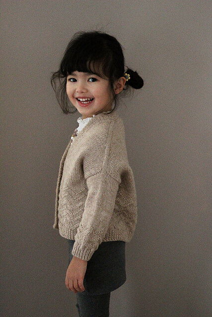 An adorable cardigan on an adorable model. Adult size coming soon!